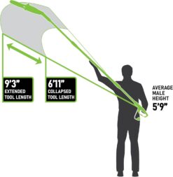 - Chain saw extension pole that extends up to 9’5″ for easily reaching high branches