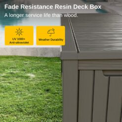 - Durable, Waterproof, and Fade Resistant: Our 180-gallon outdoor storage box is a tank. It’s made of resin material designed to endure the warmest of days and the wettest of nights. The deck box will always look as good as new, and your valuables will be kept dry—rain or shine.