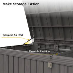 - Safe and Injury-Free: The EAST OAK outdoor storage box equipped with hydraulic lever design to ensure safe operation without the risk of pinching your hands.