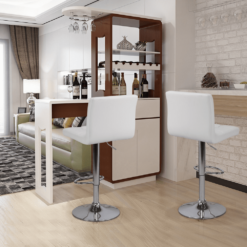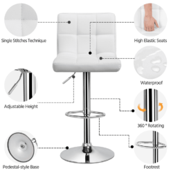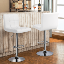 This modern adjustable bar stool is the perfect accent piece for your kitchen or dining room. It has a comfortable sponge padded seat, which offers you a plush and cozy sitting experience. The ergonomic mid-back backrest provides ample support after a long day of work. The faux leather covering is soft to the touch and easy to simply wipe down if it gets dirty. This chair also features a 360 rotating function so you can swivel any which way you would like. The base is made of premium, durable galvanized steel in a sleek chrome finish, guaranteeing this set of 2 bar stools will last a long time. Simple assembly is required and detailed instructions are included.