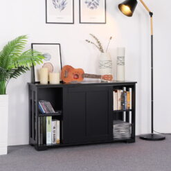 Easyfashion Antique Buffet Sideboard Kitchen Table with Sliding Door, Black