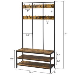Easyfashion Industrial Hall Tree with 2 Storage Shelves, Rustic Brown