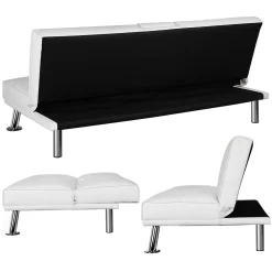 Looking for the perfect anchor piece for your living room? Complete your space with the Luxurygoods futon! This sofa bed is made of high quality artificial leather with a sturdy iron frame. The durable materials guarantee that this futon will last a long time. This home recliner couch can be transformed into a quick guest bed for visitors by removing the armrests and reclining the back rest. This futon is designed for comfort with ergonomic materials and a middle armrest that folds down with two cup holders. Find a friend to relax and enjoy a cold beverage with! This sofa bed is ideal for small spaces, and well-suited for an apartment, studio, dorm room, living room, bedroom, etc. The modern yet transitional design makes it blends perfectly with any home decor style. Simple assembly is required and detailed instructions are included.