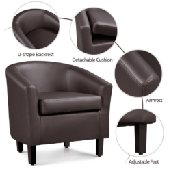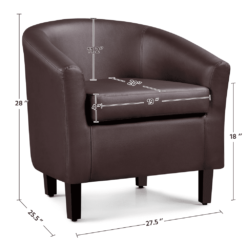 Featuring a plywood frame, foam fill, solid pine wood legs, and faux leather upholstery, this faux leather club chair can be a delightful addition to any seating ensemble. With the ability to hold up to 300lb/136kg, it’s capable of providing users with a strong and durable seat. The curved back and armrest introduce soft lines to your space and the chair offers a nice-looking spot to kick back and relax in the living room, bedroom, home bar, or for commercial use in the cafe, hotel and suchlike.