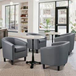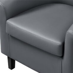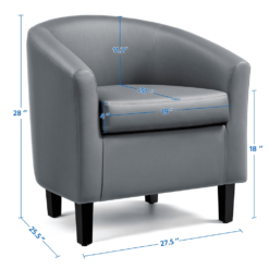 Easyfashion Upholstered Barrel Arm Accent Tub Chair, Dark Gray Faux Leather