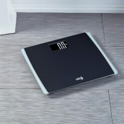 - EXTRA WIDE SPACIOUS PLATFORM: This precision premium digital body scale is easy to use. This black stainless steel 15″ x 13″ wide durable glass platform provides extra stability and comfort, making it easy to use.