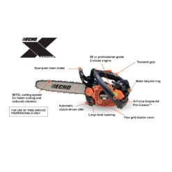 The ECHO X Series CS-2511TN 12 in. chainsaw is the lightest gas-powered top-handle chainsaw in North America with the most power in its class. The 25.0 cc professional-grade engine delivers incredible horsepower from a compact, easily maneuverable body, as well as an 80XTL Nano chain providing efficient cutting and less vibration. The CS-2511TN is the ideal chainsaw for the professional arborist, homeowner, carver, or anyone that is looking for a lightweight, compact, and easy-to-start chainsaw. It can be used for a wide range of applications from pruning to small tree felling and brush clearing.