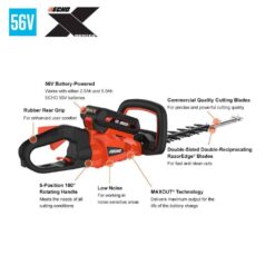 The ECHO 56V X Series DHC-2200 Hedge Trimmer is engineered to meet the demands of commercial landscapers while remaining lightweight enough to handle a wide range of cutting applications. With commercial-grade construction and 22 in. RazorEdge blades, this hedge trimmer delivers competitive blade speeds of up to 4,600 strokes per minute, enhancing both performance and precision. The DHC-2200 is ideal for trimming a variety of plants, including hedgerows, bushes, and evergreens.