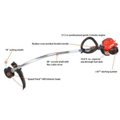 - Weed trimmer features a 21.2 cc professional-grade 2-stroke engine