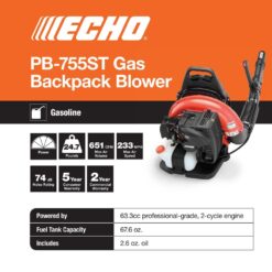 ECHO PB-755ST 233 MPH 651 CFM 63.3cc Gas 2-Stroke Cycle Backpack Leaf Blower with Tube Throttle