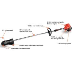 - Weed trimmer features a 21.2 cc professional-grade 2-stroke engine