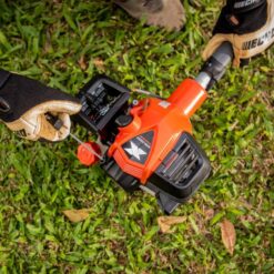- Weed trimmer features a 25.4cc professional-grade 2-stroke engine