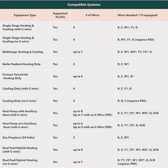 - Works with most 24 VAC HVAC equipment; Gas, oil, electric, dual fuel, forced air Conventional (2H/2C) Heat Pump (4H/2C), Boilers, & dual transformer systems, includes Power Extender Kit for homes without a C or Common Wire, to ensure an easy installation