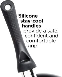 Extra durable construction for excellent heat distribution. Riveted handles provide additional strength and the silicone handles stay cool and make cooking a breeze!