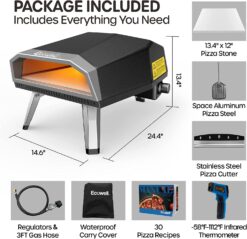 ECOWELL EPO120 Outdoor Oven-12 Gas, Propane Ovens for Outside with Pizza Stone/Peel/Cutter, Infrared Thermometer and Portable Waterproof Cover, Black