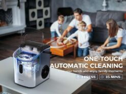 - Effortless Self-cleaning – The Self-cleaning feature thoroughly cleans every nook and cranny of the ice maker with circulating water. You can enjoy healthy and fresh nugget ice at any time. We suggest washing the machine before long-term storage and ensuring it is dry inside.