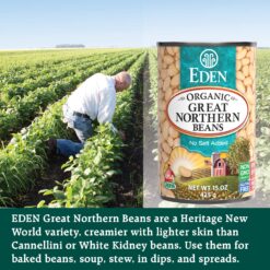 No salt added. Low fat. Nature’s Perfect Food: 100% U.S.A. family farm organically grown. Eden Organic Great Northern Beans are a heritage variety enjoyed by Native Americans and settlers. A versatile white bean, with subtle flavor. Ideal marinated, baked, in soups, with pasta and salads. Meticulous tracking and audited records guarantee the purity of this food from farm to table.
