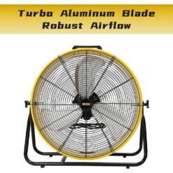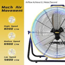 Built with 1/3 HP Powerful Motor and Turbo Blade, this PORTABLE drum fan provides refreshing breeze for large spaces. High speed 8200 CFM / Medium speed 6900 CFM / Low speed 5800 CFM. It is ideal for Warehouse, Workshop, Factory, Garage, Basement, Industrial, Commercial and Covered Patio.