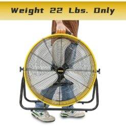 - This Portable floor fan takes only 22 Lbs, 1 tough carry handle and compact size for convenient transportation, easy moving everywhere portability and storage. With nonskid positioning legs on the other side, making the fan more stable during long time operation