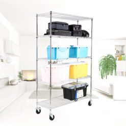 - LARGE STORAGE RACK SHELF: Being 48″ wide by 18″ deep by 72″ high (76″ when using included 4″ casters) and having 5 levels of metal shelves