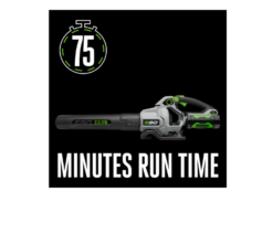 - Over 75-minutes of run time: 10-minutes on Turbo; 100 minutes on low with 2.5Ah Battery