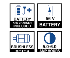 - 5.0 Ah ARC Lithiumâ„¢ battery, Power+ 56-Volt Charger, Flat and Tapered Nozzle attachments included