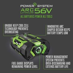 The EGO POWER+ 56-Volt 2.5Ah battery uses ARC Lithium technology to deliver Power Beyond Belief and is compatible with all EGO outdoor power equipment. Keep-Cool battery technology keeps each cell cool for long life and work in the most extreme conditions.