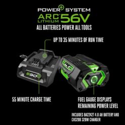 - Approximately 55-minute charge time with the 4.0Ah ARC Lithium battery and POWER+ 320W charger, Compatible with all EGO 56V ARC Lithium batteries. 5-year tool warranty, 3-year battery warranty