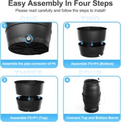 - Mesh Screen on Top: Blocks debris and keeps water clear. The mesh screen prevents leaves, twigs and other debris from entering the barrel, ensuring that the collected water remains clean and can be used for a variety of purposes.