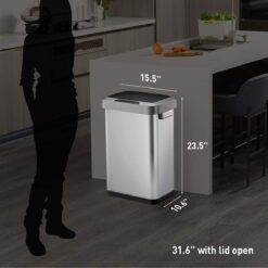 - Sleek and Durable Finish – Meticulously crafted with a stainless steel finish, this stylish touchless trash can offers a cool and smooth texture that’s durable and visually appealing for any home decor style.