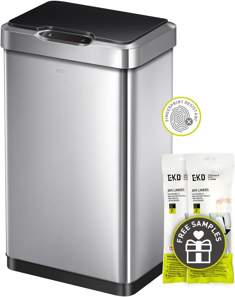 - Premium Motion Sensor Technology – Experience the smoothest, most seamless lid opening and closing technology with this EKO hands-free automatic trash can.