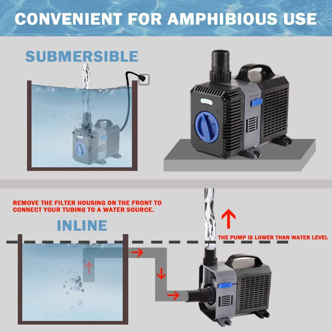 Electric Adjustable Flow Garden Sumbersible Fountain Pond Filter Silent Pump (1375GPH)