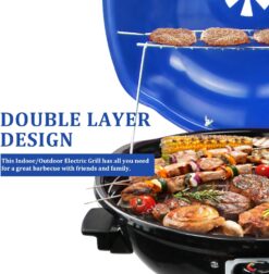 Electric BBQ Grill Techwood 15-Serving Indoor/Outdoor Electric Grill for Indoor & Outdoor Use, Double Layer Design, Portable Removable Stand Grill, 1600W (Stand Blue BBQ Grills)