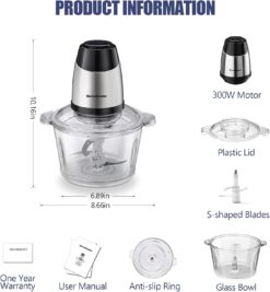 - 【Powerful Performance & 8 Cup Capacity with 300W Motor】 8 cup food processor glass bowl is suitable for most households. It’s large enough to handle various tasks like chopping beef and veggies. Also, 300W motor provides powerful performance, perfect for cutting hard ingredients up efficiently.