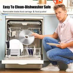 - [Easy to Clean] Is cleaning up after meals a pain? Yes, we know that. That’s why we designed this CukAid meat slicer with a removable blade, food carriage & food pusher. Also, they are dishwasher safe, so will not cause any harm. It helps manage your work in the kitchen to be easier and more efficient.