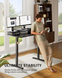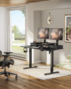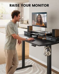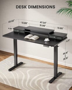 Electric Standing Desk with Double Drawers Height Adjustable 48″x24″ Stand Up Desk with Monitor Shelf, Black