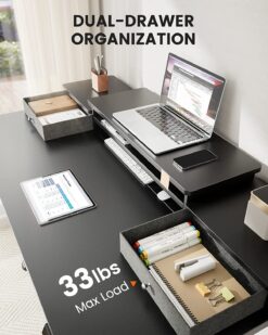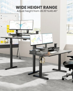 Electric Standing Desk with Double Drawers Height Adjustable 55″x28″ Stand Up Desk with Monitor Shelf, Black