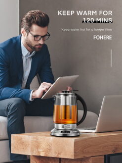 With Digital Touch Display has accurate digital temperature control for optimal brewing of various beverages. Boils water faster than the microwave or the stovetop methods, so you spend less time waiting for your delicious hot beverages. Great to make the perfect temperature water for hot tea, coffee, instant oatmeal, baby bottles, and more; has an option to keep water at the desired temperature for up to 120 minutes. Bonus tea infuser is included with purchase for brewing your favorite loose-leaf or bagged teas directly in the stain-resistant borosilicate glass kettle. The keep-warm function lets you keep your tea or water hot, so you can have another cup without having to re-boil!