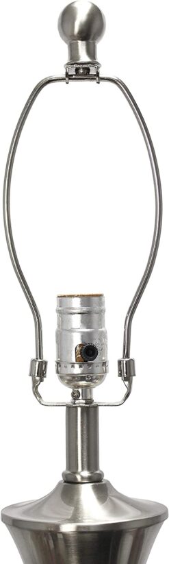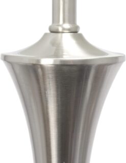 Brushed Nickel tapered lamp style atop a circular base