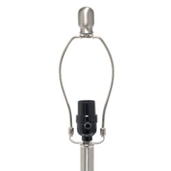 - Base Type: E26. Base Dimension: 7L x 7W x 13.5H, Height from Base to Socket/Shade: 13/9″, Bulb Included: No. Shade Security: Harp & Finial.