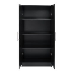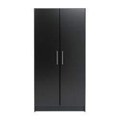Master the art of home organization with the Prepac Elite 2 Door Standing Storage Cabinet. This storage solution features two sophisticated soft-edge doors on European style six-way adjustable hinges and three internal shelves- two adjustable and one fixed- to accommodate flexible organization needs. Adorned with a deep black laminate finish and two satin nickel-finished metal pull handles, this multi-use closet cabinet will provide convenient and seamless storage anywhere in your home.