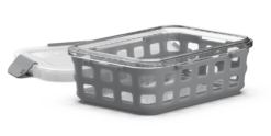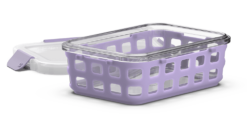 An extra-thick silicone sleeve protects glass from chips and breaks while the plastic lid is air-tight and leak-proof, keeping food fresher for longer. These containers are leak proof, stain-resistant, and oven safe with the lid off.