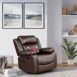 Elm & Oak Maxima Standard Manual Swivel Recliner with Massage and Heat, Brown Faux Leather
