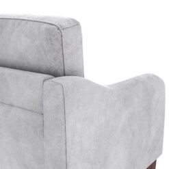- Simple modern design with curved armrests and a soft velvet upholstery. Comfortably seats three people.
