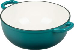 - High Quality Cast Iron and Enamel–Made of thick, heavy-duty cast iron with a glossy enamel, whether it is heated at high temperature or constantly stir-fried, it is not easy to damage the pot.