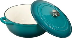 - Suitable for 5-7 People–The 5-quart enamel Dutch oven is the perfect choice for cooking food and desserts. Its perfect design makes your food look more delicious.
