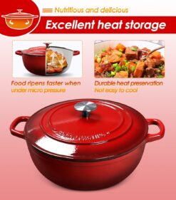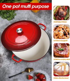 Enameled Cast Iron Dutch Ovens Pot For Bread Baking 3.5 Quarts, Red