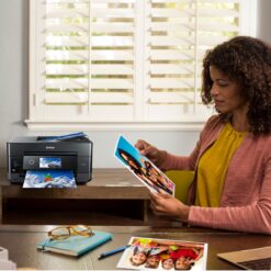 Improve your productivity with the Epson Expression Premium XP-7100 Color Photo Printer with ADF, Scanner, and Copier. It delivers superior photo quality and versatility. Save time with a 30-page auto document feeder and auto two-sided printing, copying, and scanning. This wireless photo printer also prints vivid, borderless photos on specialty paper and DVDs. The intuitive 4.3″ touchscreen allows you to view, edit and print photos, directly from a USB or card slot, so you can easily import media from a USB flash drive. It also prints smaller 4″ x 6″ photos in as fast as 12 seconds, as well as custom projects with the Creative Print App. Dual loading trays allow you to separate standard document paper and photo printing paper.