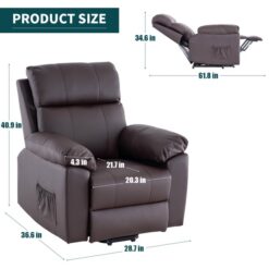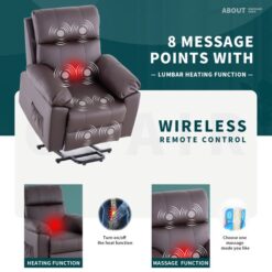 Erommy Power Lift Recliner Chair, PU Leather Recliners with Massage and Heat, Electric Recliner Chair for Elderly,Brown