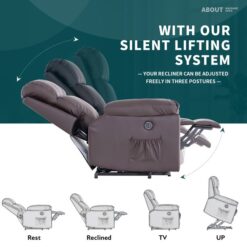 lift recliners powerful silent single motor design enables the lift chairs recliners for elderly to be adjusting to any position smoothly, it can lay back or tilt to stand which can help the elderly stand up easily. The wide armrests and comfortable headrest and backrest fit your body completely. In addition, this chair is equipped with a wireless remote control, which is more facilitates. The side pocket design provides a place for placing the remote control and other small objects.